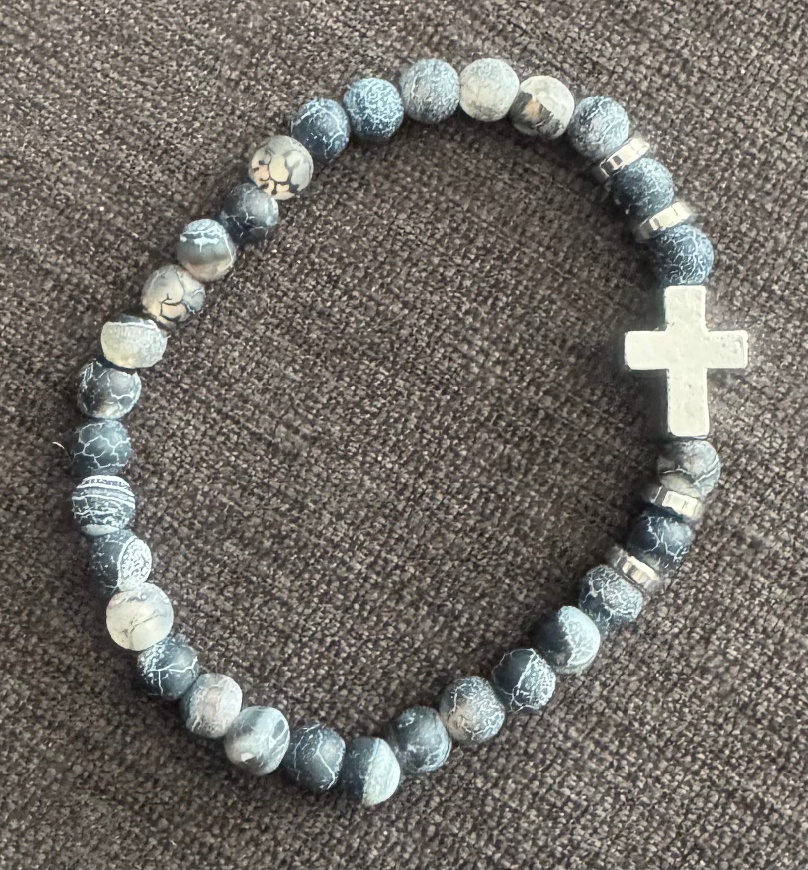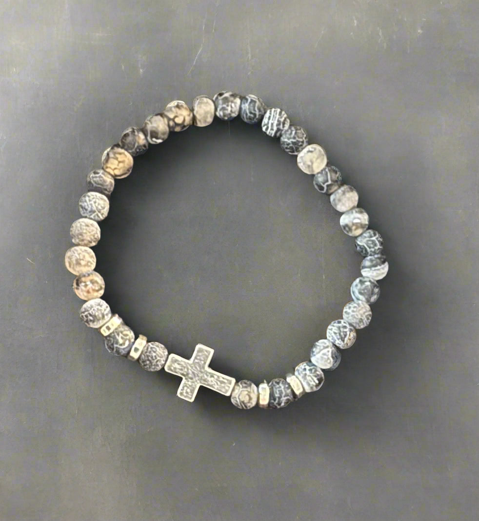 Magdalene - Natural Stone Beaded Bracelet with Silver Cross