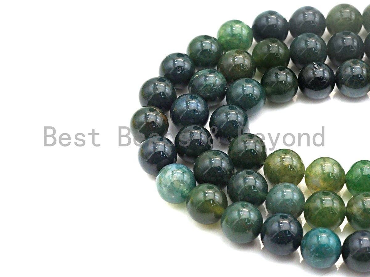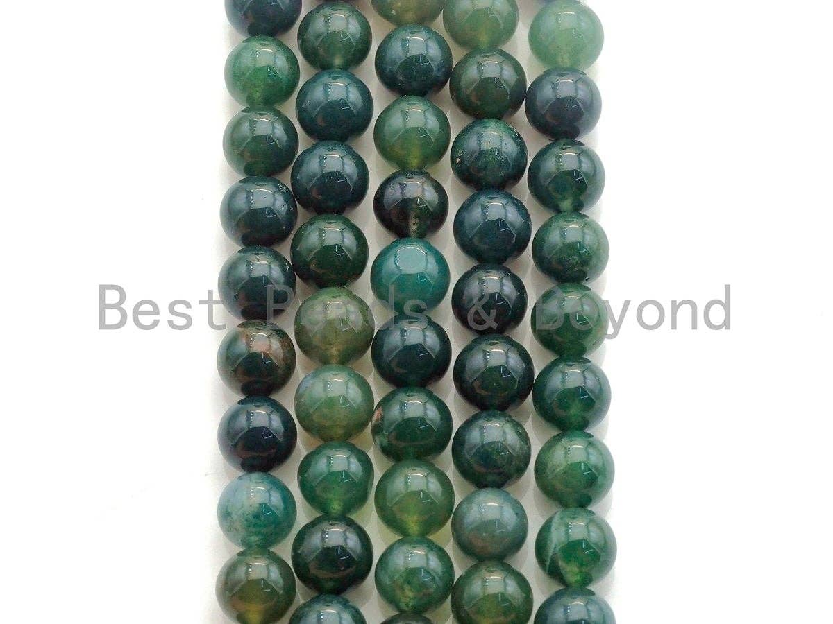 Natural Moss Agate, Round Smooth 6mm/8mm/10mm/12mm, Green Gemstone beads,15.5" Full Strand, sku#U635