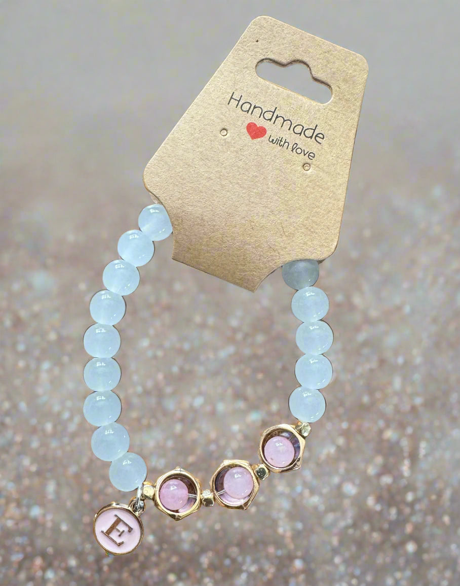 The Naomi - Natural Stone Beaded Bracelet with Letter Dangle Charm