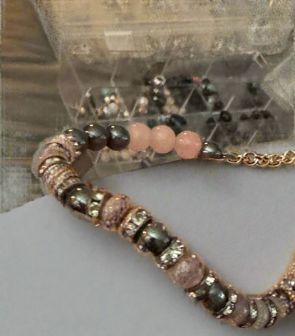 The "Sarah" is the perfect blend of elegance and strength. This beautiful bracelet is adorned with rose quartz and hematite, creating a striking contrast that captures the essence of femininity. Embody the balance of power and softness with this stylish accessory.
